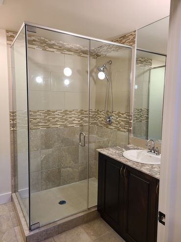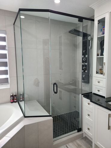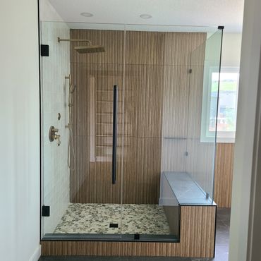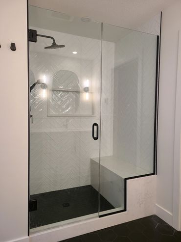 10mm shower glass is custom made to accommodate just about every opening layout you may have. Although it may cost a little more, the glass is measured and cut specifically to the opening and allows for any unlevel surfaces. With a wide variety of hardware options and colors, this type of shower glass is very popular for bathroom renovations and is perfect for enhancing a newly renovated shower stall!