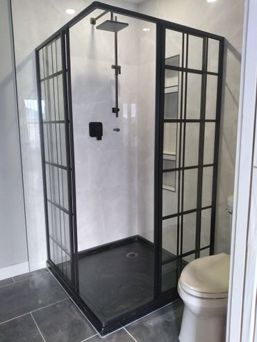 The glass used for sliding shower doors is usually 6mm - 10mm thick with all common colours of hardware available. There are some boxed kits that use 12mm glass, but they can be more expensive and can be too heavy if installing on a fiber-glass base.