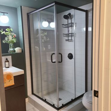 Sliding shower doors are a great option for tubs and showers especially when space is limited for a traditional swing door because of a cabinet or bathroom fixtures that can be in the way.
